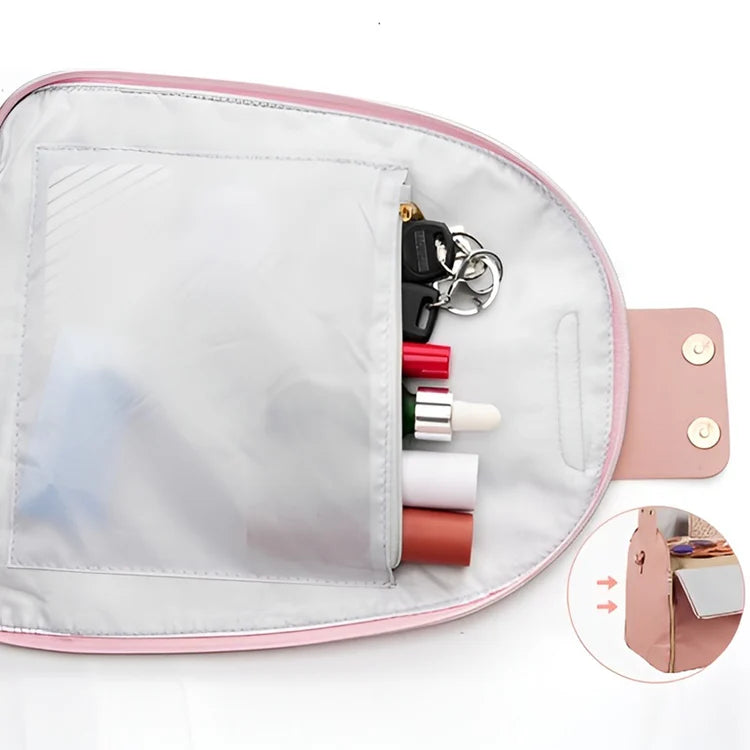 バッグを広げてハンガーフックに服をかけ、ジッパーを閉じるだけで立体的なボストンバッグに早変わり。