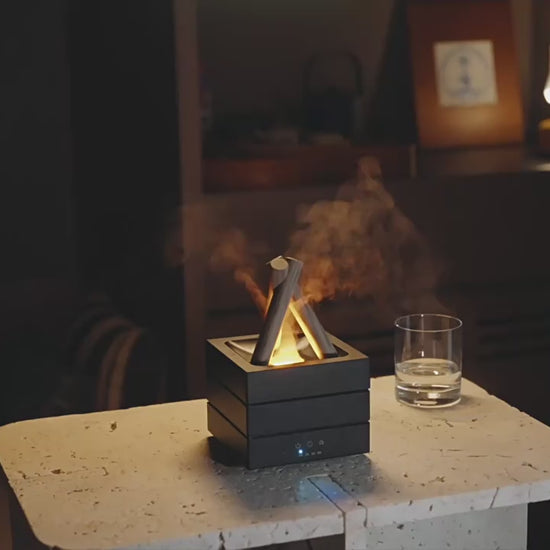 ミストでやさしく加湿、アロマの香りでリラックス。本物の炎のようなやわらかな光が、冬の夜をあたたかく包み込みます。